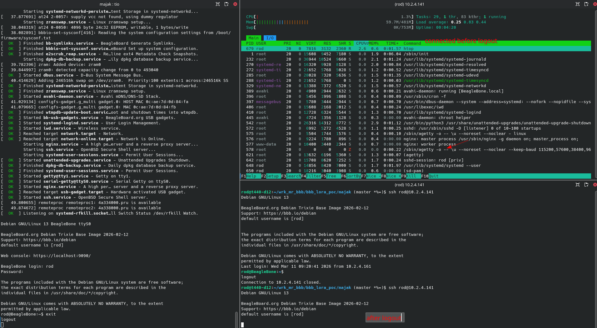 Second board - the same result, cannot logout from serial console and the state of agetty is - Z