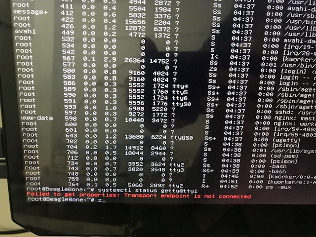 systemctl status getty@tty1hangs for a long time and eventually shows “Transport endpoint is not connected.” -