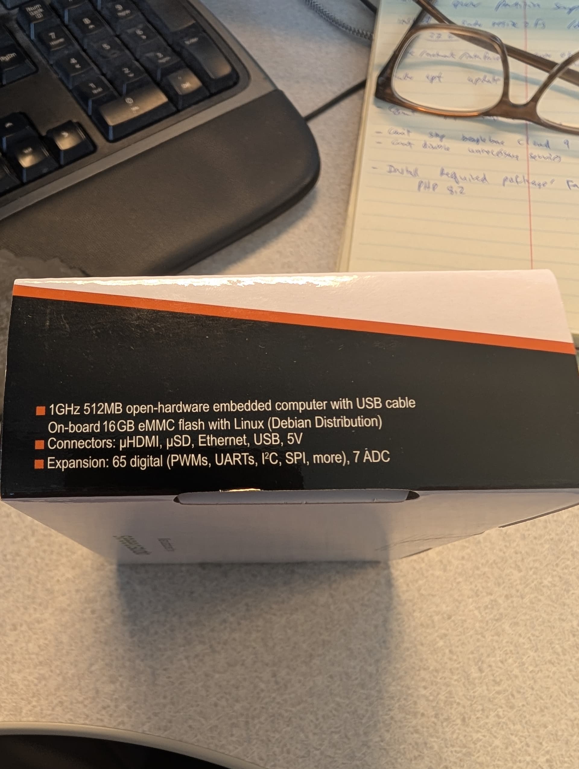 It lists On-board 16GB eMMC flash with :inux (Debian Distribution)
