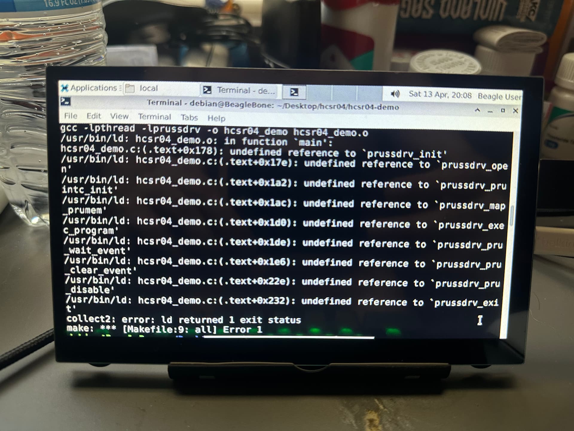 Hello everyone I am trying to run a sonar sensor to my BBB but when compiling I am getting this error