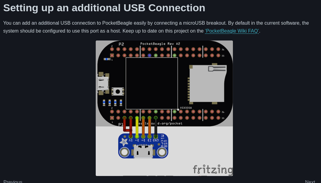 Connect it up with the exact same physical pins like the PocketBeagle 1 was and it’ll be USB host by default. (The USB pins are drop in exactly the same..)